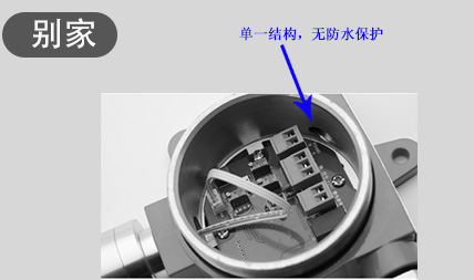 無單獨接線區域,需外加接線盒,成本增加,施工不方便。無防水處理,進水后設備報廢。